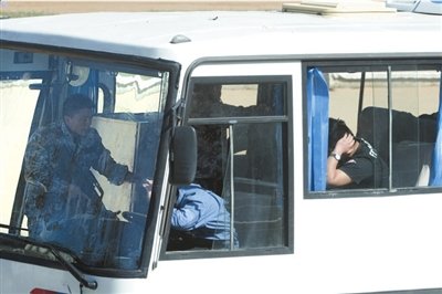 特警用破窗梯击碎车窗玻璃,攻入大巴。