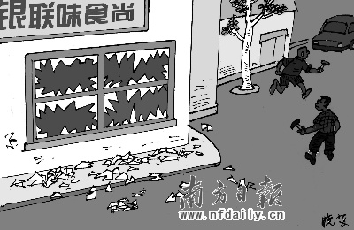 9月18日清晨,位于增城市新塘镇的“味食尚”餐馆前来上班的员工又一次被眼前的一幕惊呆了:餐馆南面钢化玻璃墙体被砸出硕大的窟窿,餐厅内布满了尖利的玻璃渣。让店方负责人无法理解的是:这已经是该店一个月之内第三次被打砸了,店方对此非常无奈,前来用餐的顾客也大惑不解,这究竟是个人恩怨还是同行竞争所致?