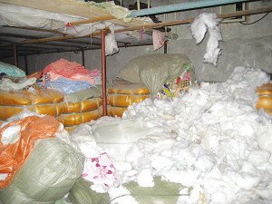 该作坊堆放着制作黑心棉的原材料