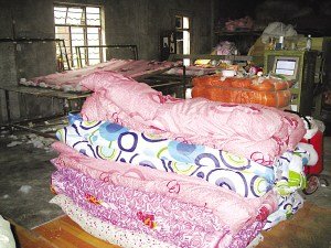 昨天上午,记者接到南京市民张先生的举报电话,称在南京雨花台区西善桥街道盛周路上,有一家大型的黑心棉生产作坊,大量生产劣质棉被。