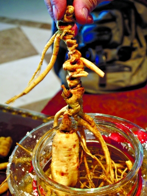 当天,他就把所购买的人参用来泡酒。在用酒洗人参时发现,很多人参的须条都纷纷掉下来。