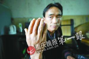 刘大明至今右手手指不能弯曲,丧失劳动能力。 记者 冉文 摄