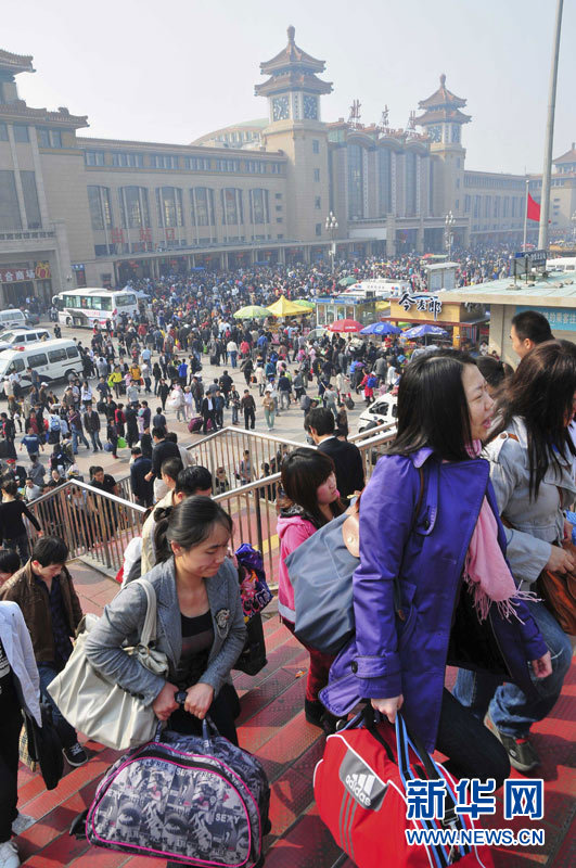 10月6日,大量旅客走进北京火车站。随着国庆长假接近尾声,各地陆续迎来返程客流高峰。 新华社发 樊甲山 摄