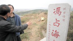 10月1日12时许,记者在吉林市北山最高峰找到了冯占海将军的墓地。此时冯占海将军外孙张先生和妻子正在跟几个工人交涉着。