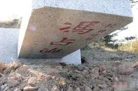 冯占海将军墓碑被人弄倒在地(资料图片)
