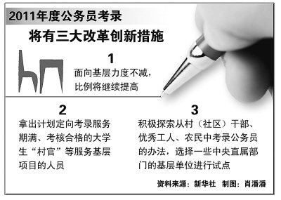 记者10月10日从国家公务员局获悉:由中组部、人力资源和社会保障部、国家公务员局统一组织实施的2010年度中央机关及其直属机构考试录用公务员工作自2009年9月开始,经过制定录用计划、发布招考公告、报名与资格审查、笔试、面试、体检和考察、公示、审核备案等8个程序,现已全部结束。从总体看,2010年度的考试录用工作进展顺利,工作更加规范、透明,受理的有关信访、申诉的信件和电话与往年相比有所减少,用人部门、考生和社会总体反映比较满意。