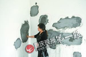墙体多处空鼓,四处补疤。