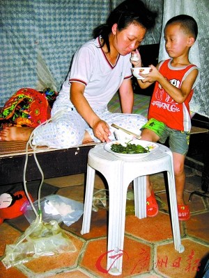 广东潮州饶平县北部客家山区,一个5岁的男孩正在日夜照顾身患尿毒症的母亲。