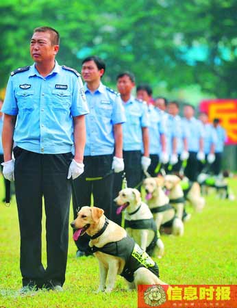 “这些万中挑一的警犬全都身手不凡,其中35条是功勋犬,它们将在广州亚运期间负责核心场馆的搜爆、搜毒等安保工作。”据介绍,广州亚运安保警犬技术团队除广州市100名带犬警察及携带的100条工作犬外,还有来自23个省(区、市)的公安机关以及民航、边防系统的210名带犬警察及其携带的210条工作犬。他们当中,有曾经参加过2008年北京奥运会、2009年北京国庆防爆安检工作中的带犬警察和工作犬。