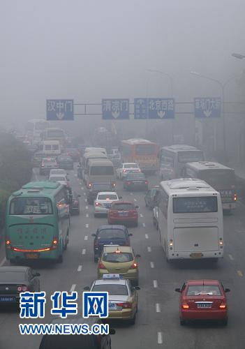 10月15日,大雾笼罩南京,车辆在大雾中缓慢行驶。当日,我国部分地区出现大雾天气