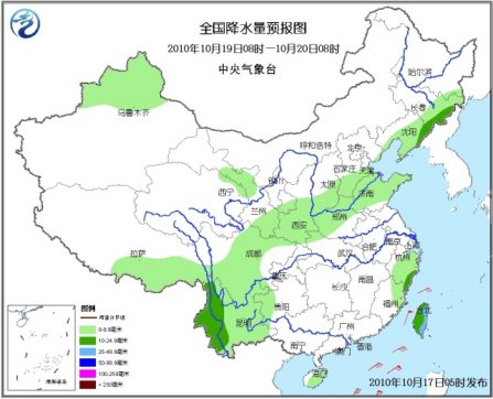 17~20日,冷空气自西向东影响新疆、西北地区东部、华北等地,气温下降3~6℃,局部地区下降8~10℃,主要是给华北地区带来一次降水天气。