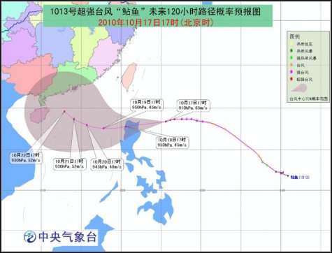 超强台风“鲇鱼”卫星云图(2010年10月17日17时)