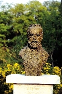 10月16日,为纪念圆明园罹劫150周年,圆明园举行雨果雕像揭幕仪式,青铜质地的雨果半身雕像正式与游人见面。 新华社发