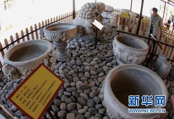 9月27日,游人在参观回归文物展。当日,纪念圆明园罹劫150周年系列活动正式启动。其中,在已经开展的回归文物展上,包括雕花石洗、雕花石堆、雕花石桌、西洋石构件、石狮子等在内的57类85件石刻向游客开放。据介绍,圆明园流失在国内外的文物至少有150万件,大部分精华流失在海外。新华社记者汪永基摄