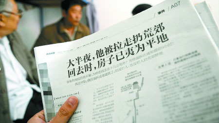 李付俊的遭遇经商报报道后,在网上引起轩然大波。当事人拿着报道到办事处讨说法 商报记者 丁洁/摄