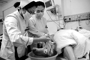 昨日,宣武医院,护士在护理病人。今年3月,宣武医院成为首批“优质护理服务示范工程”试点医院。记者 王申 摄