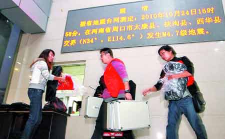 17时12分,中国地震局官方网站发布消息:“据中国地震台网测定,北京时间2010年10月24日16时58分在河南省周口市太康县、扶沟县、西华县交界(北纬34.0,东经114.6)发生4.7级地震,震源深度8公里。”