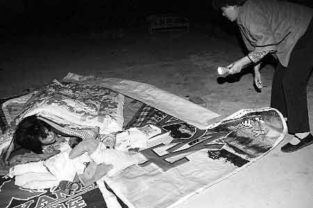 板桥镇大街上,有村民在室外铺起了床铺。首席记者张鸿飞图