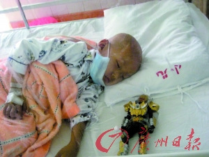 化疗后的景智睡着了。记者 李立志 摄