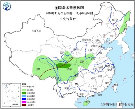 11月2日08时至3日08时,青海南部、西藏东部、川西高原北部、黑龙江东北部等地有小雨(雪)或雨夹雪;四川大部、重庆、湖北西部、云南北部、贵州北部、海南东部、台湾大部等地的部分地区有小到中雨或阵雨。东北地区东部有4~5级风。东海南部、台湾海峡、南海北部有6~7级风。