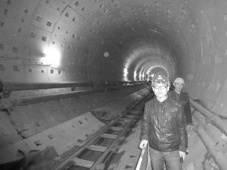 记者在隧道内