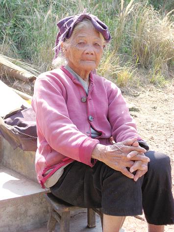 记者见到宁宣荣时,老人正坐在台阶上和老姐妹们闲聊。从老人的言行举止中,可以看出她的身体状况并不错,头不昏、眼不花。由于听不懂当地的壮话方言,记者请屯长梁永干帮忙向老人打听岁数。老人笑说:“今年86岁。”