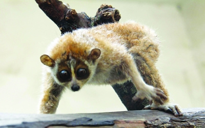 10月30日晚,常州市民程先生无意中在小区楼道里逮到了一只小动物,出乎他意料的是,经过动物专家鉴定,这只小动物竟然是国家一级濒危保护动物:懒猴,全国仅有百只左右,珍贵程度不亚于大熊猫。至于这只贵客在常州出现的原因,专家分析认为,可能是有人非法购得将其带来常州,无意中懒猴逃跑。这只懒猴目前被常州动物园收养。
