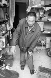 文家场文康路110号,李义红在这里开修车铺已有4年了。不足20平米的小店,被隔成前后两段:临街一段修车;后半段则是他和儿子李波的日常起居之所。