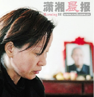 昨日,岳麓区的一处小区里,王华在父亲遗像前伤痛不已。