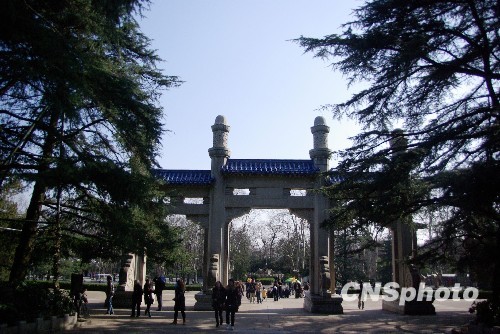 资料图:江苏省南京市中山陵,陵墓入口处有高大的花岗石牌坊,上有孙中山先生手书的“博爱”两个金字,又称博爱坊,吕彦直设计。 中新社发 姚俊 摄