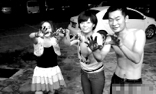 伸出血淋淋的双手,他们还在做鬼脸 (图片来源:郑州晚报)