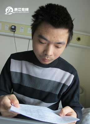 今天上午,记者在浙江省中医院见到了这位患者,他叫杨德彪,27岁,安徽广德人。