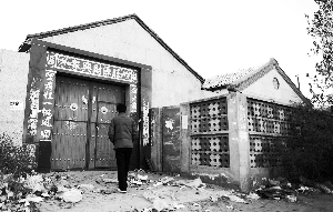 11月11日,北京大兴区大洼村,王飞亮在六叔王玉岗生前居住的院子门前徘徊。本报记者 杨杰 摄