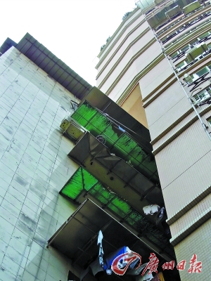 19层住宅紧贴8层商品房北侧墙壁而建,并且“骑”在8层楼的上方。
