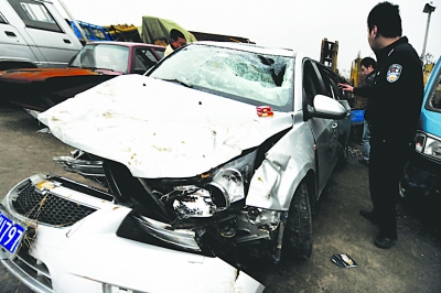 出事车辆已撞得面目全非。郭一鹏 吴胜 摄