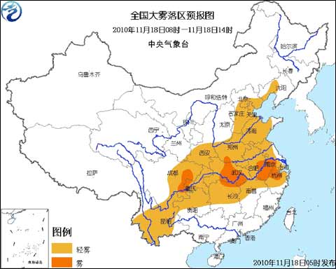 中央气象台11月18日06时继续发布大雾蓝色预警: