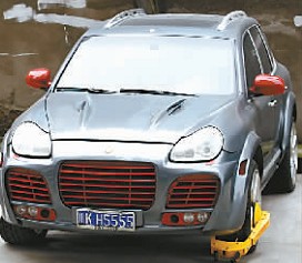 卡宴车被警方暂扣 记者 贺怀湘 摄
