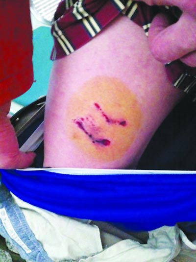 多位市民腿部和手臂被咬得血迹斑斑。吴胜 裴睿 摄