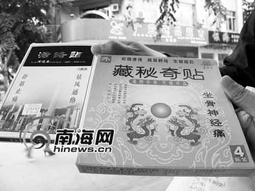 记者来到琼海市金海路的广益药品超市金海店暗访发现,货架上摆满了天津两家公司生产的标称“津卫防保健字号”字样批准文号医疗产品:活络贴和藏秘奇贴。