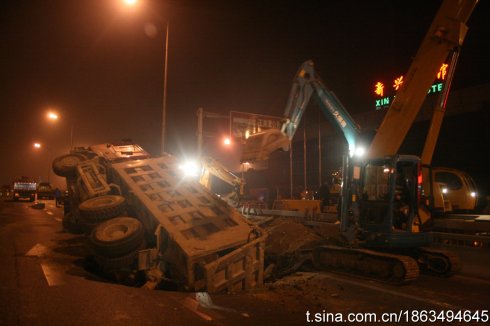记者:我现在已经是在北京的西三环公主坟的新兴桥的北侧,事故是发生在北向南的方向也就是三环外环的主路上,这是一个略微上坡的新兴桥引桥的位置。根据现场人员的讲述,事故发生在今天凌晨的1点钟左右,当时路面塌陷下去了有一个大约6米长、6米宽、4米深的大坑,当时有一辆运渣土大货车陷到坑里,不过目前幸好没有人员伤亡的消息。