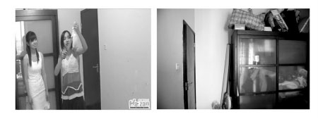 虐兔女视频截图(左)和网友的家(右)对比,衣柜、门的位置、造型、门把手、开关样式都很像