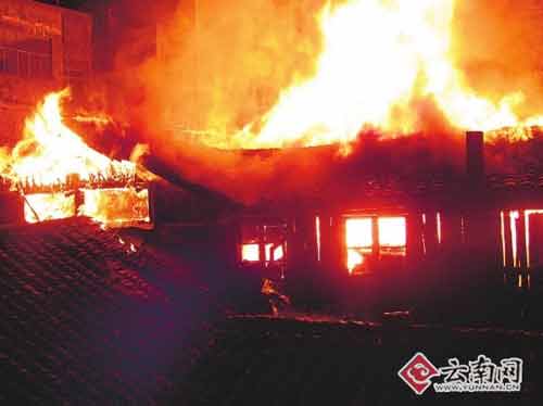 起火点位于腾冲商业区主大街内,四周毗邻建筑密集,且此时正处深夜,大量居民还未逃离现场,浓烟滚滚的大火已将整个四合院吞噬,且火势已逐步向周边住宅楼蔓延。