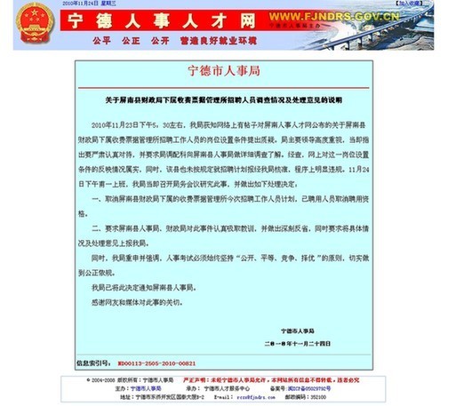 福建屏南县财政局招聘条件似个人简历,网友质疑系“量身定制”