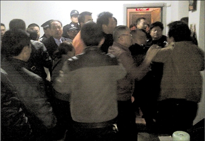 现场视频中,警方与死者家属发生争执。视频截图