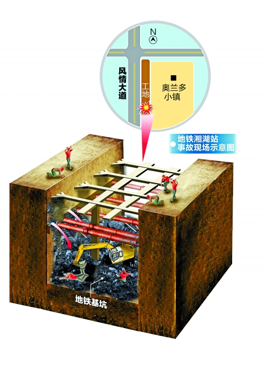 昨天中午12点30分左右,杭州地铁1号线湘湖站北三2基坑。