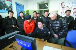 昨日,网友参观“平安北京”博客工作站,与民警交流。 通讯员 张岩 摄