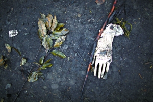 11月26日,云南泸西县小松地煤矿,枪击现场遗留的医用手套。本报记者 王申 摄