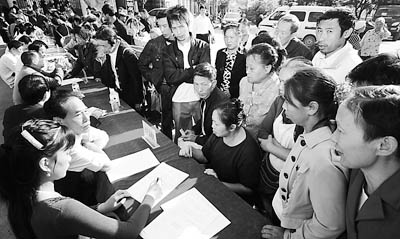 10月22日,重庆市永川区在五间镇开展“永川区人大常委会与‘一府两院’联合接待人民群众来访”活动,当日共接待来访群众141人次,处理群众反映问题108件,内容涉及土地征用、低保和五保等方面。 陈仕川摄(资料图片)