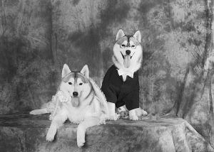 不久前,黄女士请摄影师为它俩拍婚纱照,哈士奇是好动的狗,一下午黄女士和摄影师累得满身是汗,总算拍了十几张满意的相片。黄女士拿着照片向记者介绍:坐得端端正正的,是“婚照标准像”;两条狗狗一起望着右前方的,是在“憧憬未来”;“新郎”坐得高高的,“新郎”温驯地趴在地上,那是最般配了……