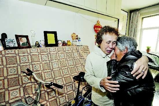 12月2日上午,在山崎宏家中,他的女儿山雍蕴(左)和亲人相拥而泣。记者 王媛 摄